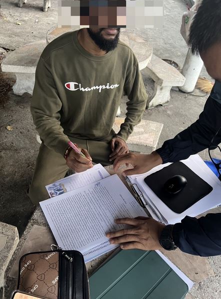 Law enforcement officers from several units worked together to apprehend the man after confirming his location. The officers then transported him to the Bang Sao Thong Police Station in Samut Prakan province where his arrest warrant was issued.
