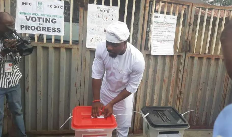 Gbadebo Rhodes-Vivour, the gubernatorial candidate of the Labour Party (LP) in Lagos state has exercised his franchise at his polling unit at PO 045 in Anifowoshe, Ikeja, Lagos State.
