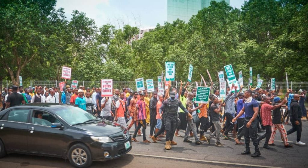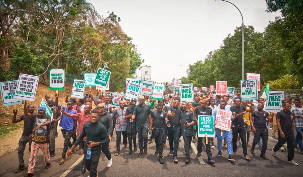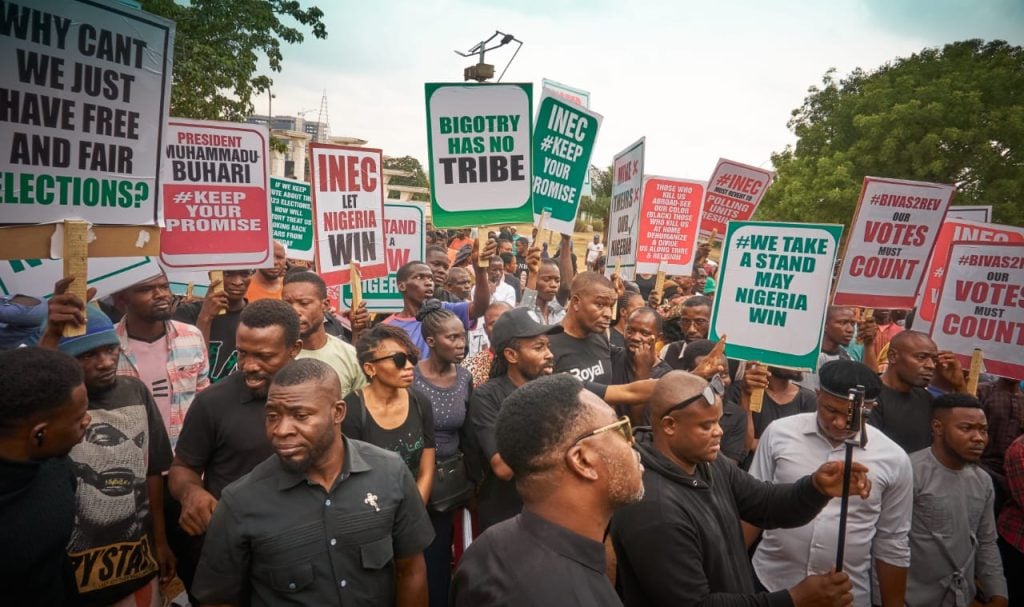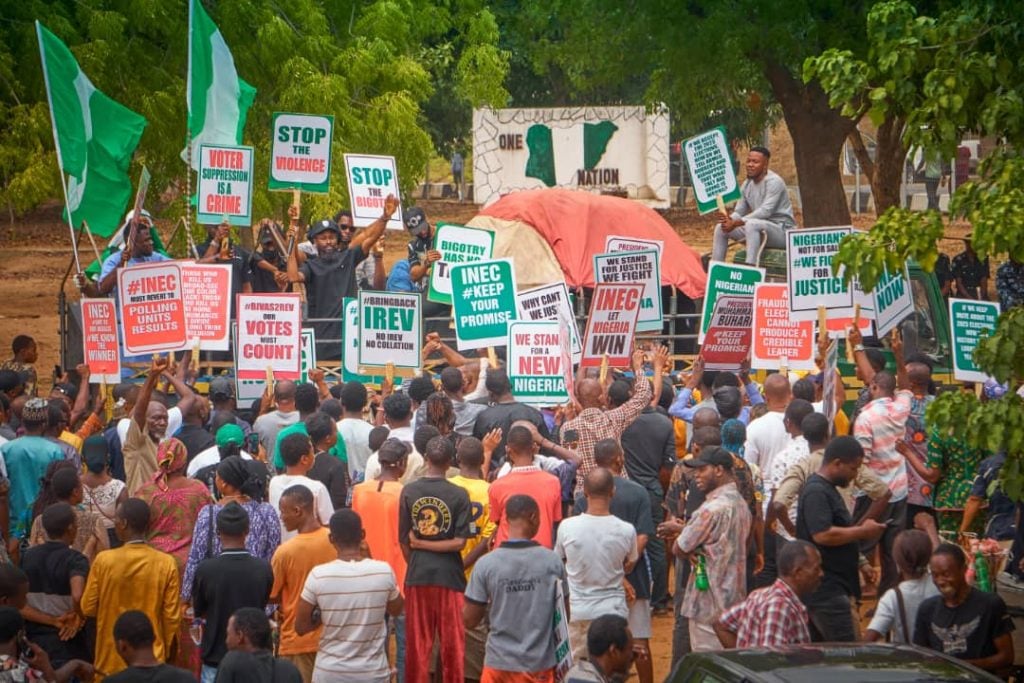 2023 Elections: Protesters Call For Interim Government, Arrest of INEC Chairman (Photos)
