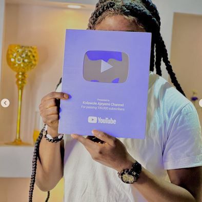 “Finally Arrived 🥇🏆 Thank you @youtube. Thank you everybody who subscribed to Kolawoleajeyemi Channel,” he wrote.