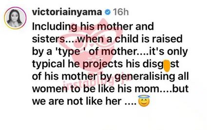 Victoria Inyama, who commented on this said that by referring to women in general, it also includes White Money’s mother and sisters.