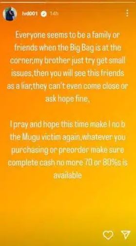 Following the incident and his issue at court, IVD has lamented about how his rich friends and family have distanced themselves from him over a “little” issue.