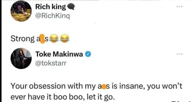 Replying to him, Toke Makinwa reminded him that he can never have an a$$ like her, nudging him to let go of his obsession.