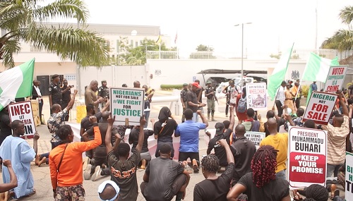 Expressing displeasure over the outcome of the presidential election, the protesters called for sanctions on Prof. Yakubu Mahmood, National Chairman of the Independent National Electoral Commission, INEC, and all state electoral commissioners and other INEC officials who contributed to the alleged illegality that happened during the 2023 election.