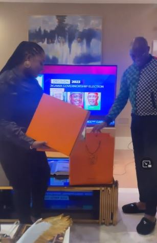 The actress on Monday shared a video on Instagram of Adegboyega presenting the bag to her.