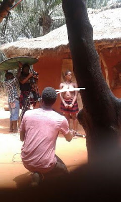The new Nollywood movie is being shot in Nsukka but many are wondering what kind of movie would warrant young women to bare their breasts like that.