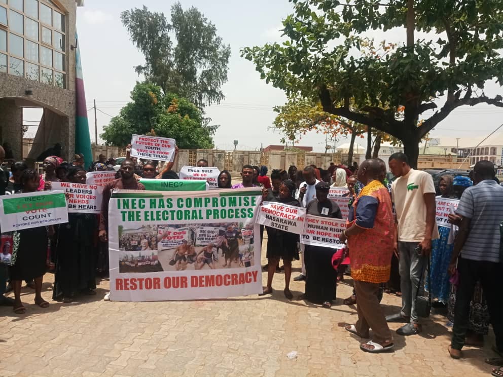 They demonstrated with placards reading, “INEC has compromised the electoral process; restore our democracy”, “Save our democracy in Nasarawa State”, among others.