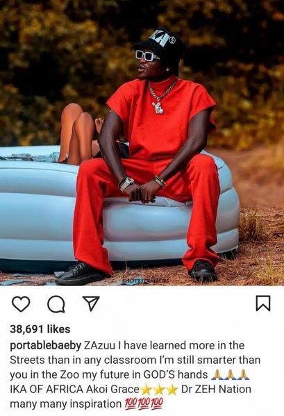 He wrote, “Zazuu I have learned more in the streets than in any classroom..I’m still smarter than you in the Zoo my future in God’s hands. Ika of Africa Akoi Grace. Dr Zeh Nation many many inspiration”.