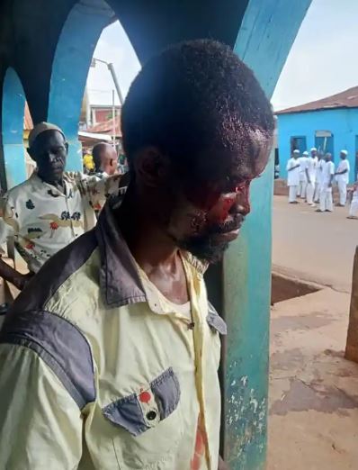 The Imam, Alhaji Abdullateef Adesiyan, was beaten with a cane.