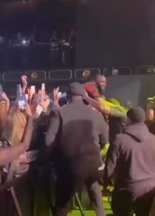While in the heat of the moment, as he was performing, he excitedly jumped into the crowd while performing at the concert and the crowd cheered in screams, singing his songs word-for-word on Sunday night.