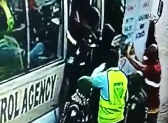 “They beat up the estate guards, tore their uniforms and attempted to force one of them into the Coastal bus, as seen in the image above (a screenshot from a CCTV recording of the event).