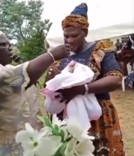A video has emerged online showing the moment a woman made a really startling comment during a naming ceremony,.