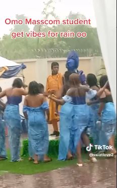 The asoebi ladies were seen dancing in the rain with the bride and cheering her on during her traditional wedding ceremony.