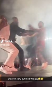 A video has captured the moment superstar singer, Davido almost knocked out a male fan while performing on stage at his Timeless Concert in Lagos.