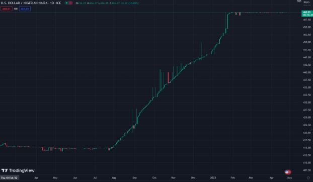 The Nigerian Naira (NGN) is the official currency of Nigeria, a country located in West Africa. NGN has experienced a massive devaluation throughout the second half of 2022 and the first half of 2023. The price of USD/NGN has increased from around 415.00 level to 460.00.