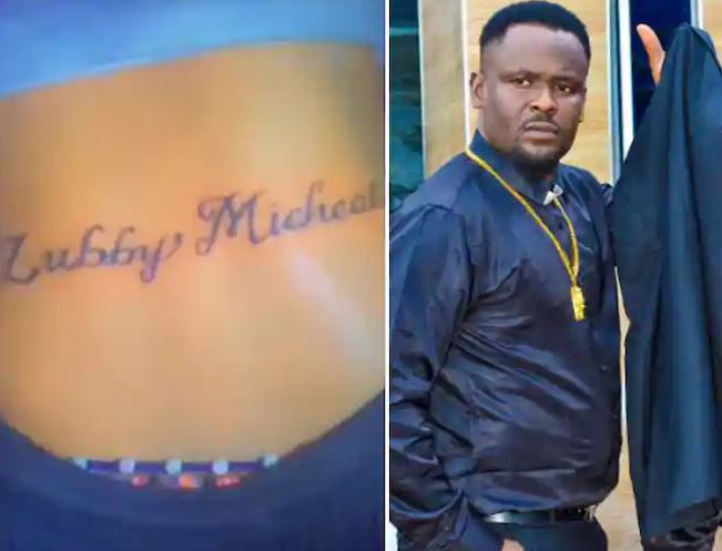 A video has shown the moment a female fan of actor, Zubby Michaels got a tattoo of his name on her waist to show her love for him.