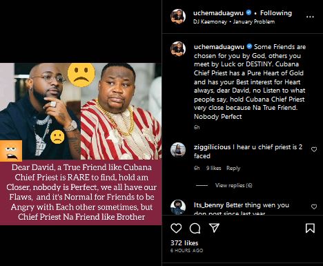 Nonetheless, Uche Maduagwu pleaded with Davido in a fresh post to let his friend back in, as he is one of the real ones.