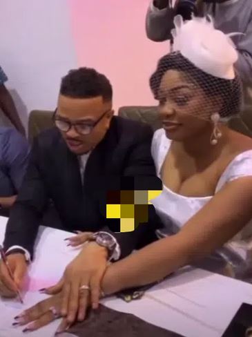 The video shows Nuella wearing a stunning wedding dress, alongside her alleged new husband, as they signed some documents.