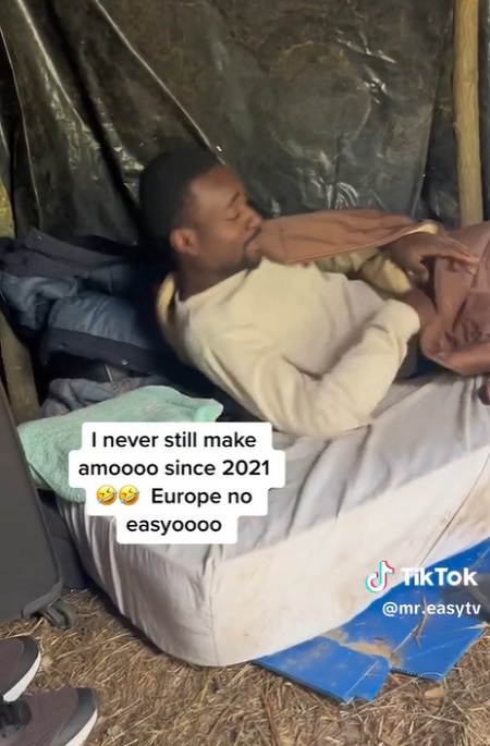 A Nigerian man sleeping in a forest after relocating to Europe in 2021 has narrated his ordeal.