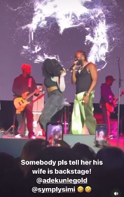 She moved closer to the singer and threw her backside to him on stage, an action which Adekunle Gold wasn’t pleased with.