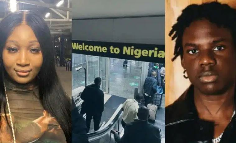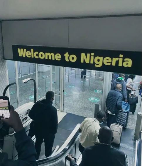 She shared photos from her moments on the plane taking her to Nigeria and another at a Nigerian airport when she arrived the country.