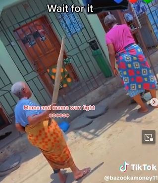 A viral video has captured the moment two elderly women were involved in an altercation which almost led to a physical exchange.