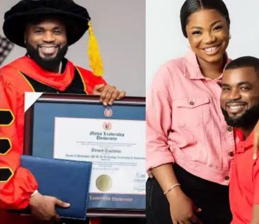 Popular Nigerian gospel singer, Mercy Chinwo is celebrating her husband, Pastor Blessed as he bags an honorary doctorate degree from Myles Leadership University.