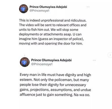 The Nigerian Police Force Public Relations Officer, Olumuyiwa Adejobi, has reacted to the video of a police officer opening a car door for popular singer, Spyro.
