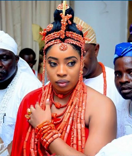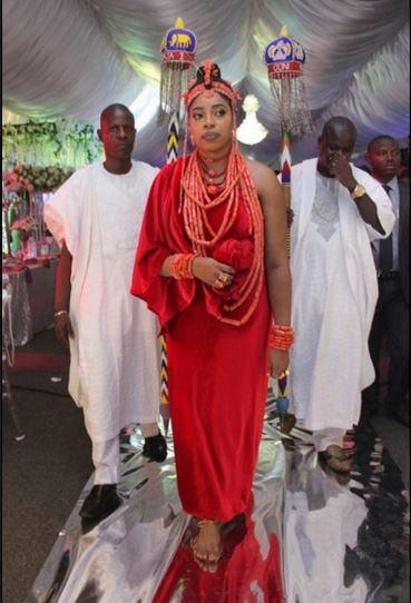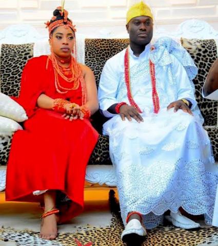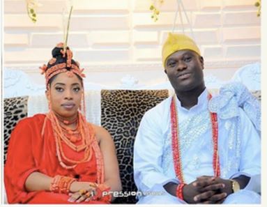 The Ooni of Ife Oba Adeyeye Enitan Babatunde Ogunwusi is pictured with his new bride Wuraola Otiti Zynab Obanor after their traditional marriage ceremony which took place in Benin yesterday.