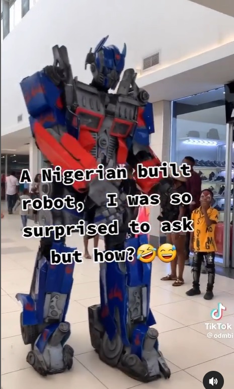 Fah built what nonsense? That's a costume... Person dey inside am dey move. Machines don't move that rapid, sensors and signals have to travel to CPU and power has to be delivered efficiently to make parts move, and at times these signals can jam if the code is not efficient, if there is latency issue, if there is network pathway delay, CAN buses n LIN buses... Calibration issues, coordinates issues and all. This ain't no robot jare.
