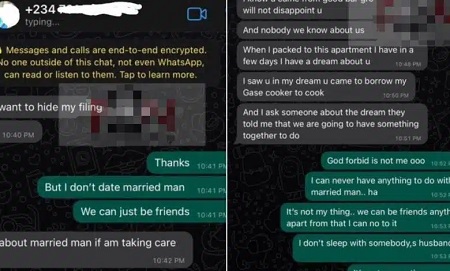 A lady has revealed the chat she had with a married neighbour asking her out.