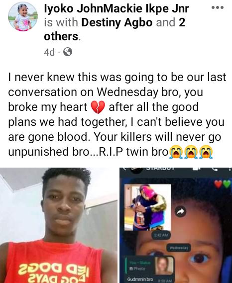Meanwhile, a Facebook user took to the platform to share a screenshot of their last conversation, alongside photos of the deceased.