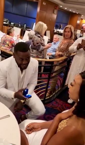 ‘’It's been 10 beautiful years, we have got two beautiful boys. I didn't really know what I was saying will you marry me? I didn't know what Will you marry me meant'. I didn't know that it meant will you journey with me? Would you do battle with me? We may go against the world together, would we dream together? Would we live together? Cry together , do everything together. And so today, ten years later, I am going to ask the question again, ‘’will you say yes again?'' Adeyemi said while on one knees and holding a box with a ring