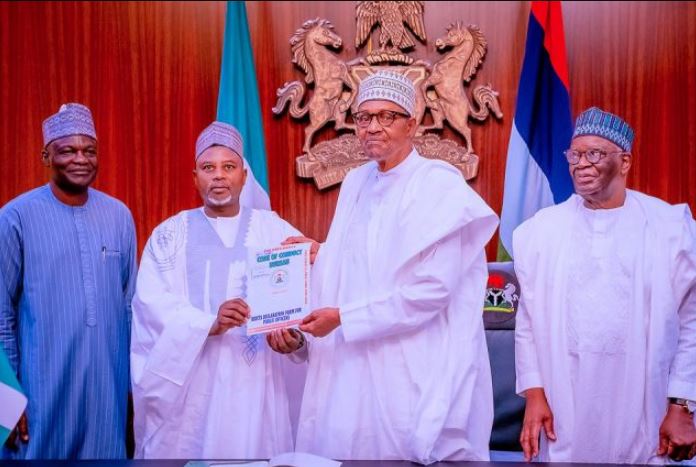 Buhari received the form from a delegation of the Code of Conduct Bureau led by its Chairman, Prof Isah Mohammed, who arrived at the Aso Rock Villa Friday afternoon.