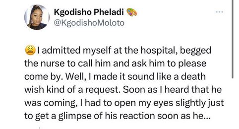 Responding, Moloto stated that she admitted herself into a hospital after the breakup, and had the nurse call her ex to rush down.