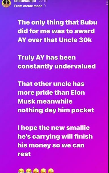 “The only thing that Bubu did for me was to award AY over that Uncle 30k. Truly AY has been constantly undervalued.