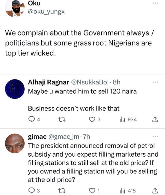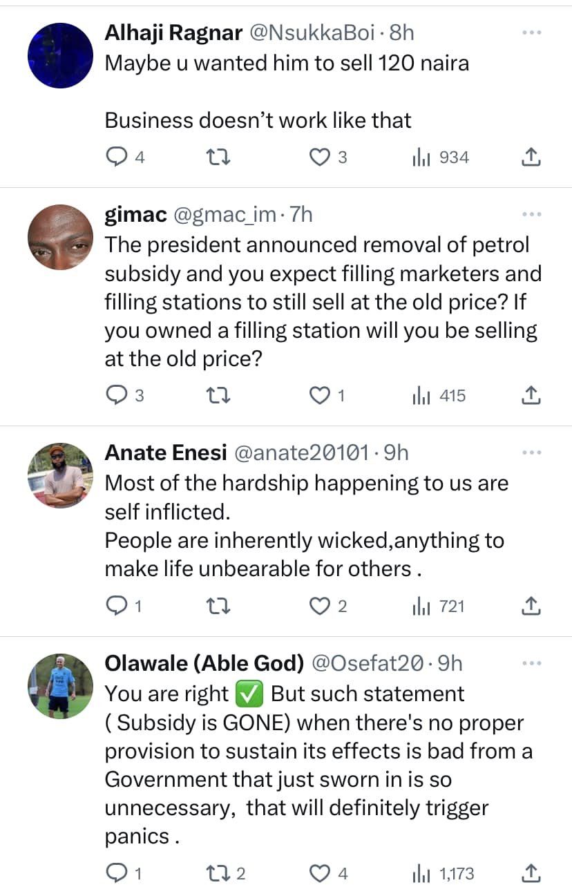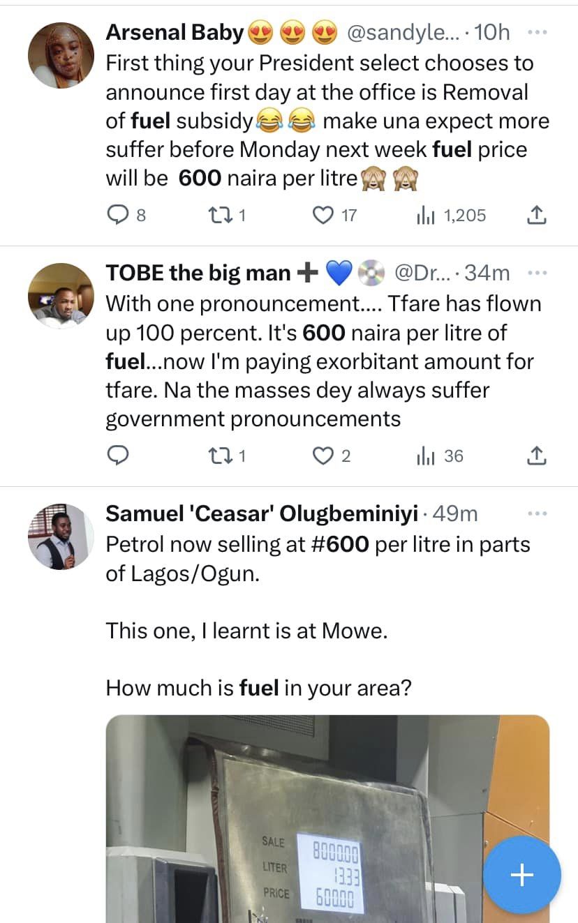 Nigerians have taken to social media to lament buying fuel at N600 shortly after President Bola Tinubu announced that fuel subsidy is gone.