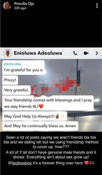 Priscilla Ojo took to her Instagram page to clear the air on this as she mentioned how she had seen posts saying that she and Enioluwa aren’t friends.