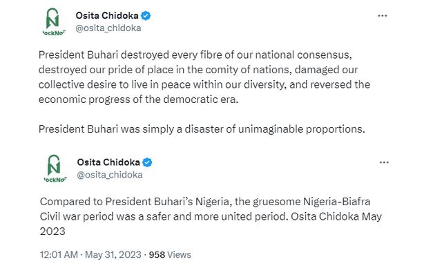 In a tweet posted on his handle, Osita opined that the former President “destroyed every fibre of Nigeria's consensus as well as the destroyed Nigeria's pride in the comity of nations.”