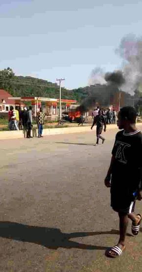 Angered by the shootings, the youths started demonstrating and set the military vehicle ablaze.
