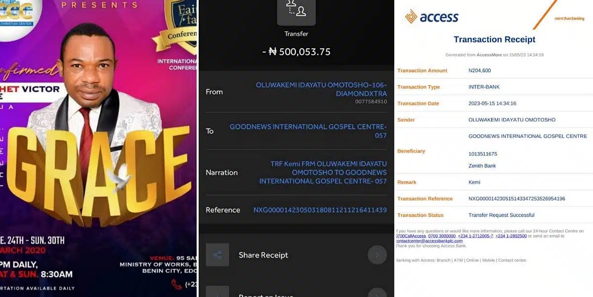 According to her, she sent the pastor money totalling over ₦2,000,000 in both his personal account and the church’s account.