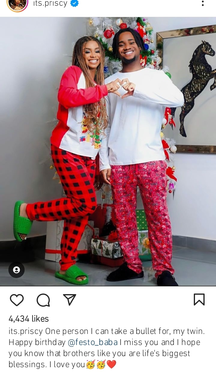 “One person I can take a bullet for, my twin. Happy birthday @festo_baba I miss you and I hope you know that brothers like you are life’s biggest blessings. I love you”.