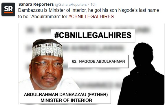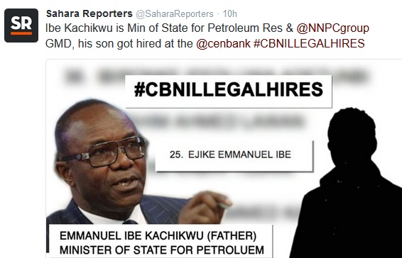 reported it here some weeks ago that the Central Bank of Nigeria (CBN) governor, Godwin Emefiele, handed out jobs of the apex bank to the children of those highly connected in order to save his own.