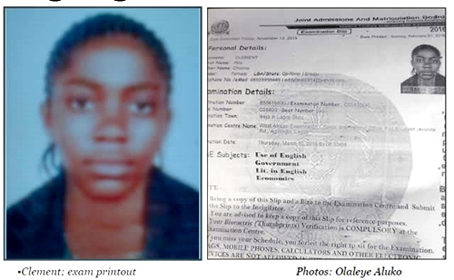 "Rita (Clement) finished from a college on Aina Street in the Ojodu area. She just concluded her SSCE; we then enrolled her for the UTME. Her father lives in Enugu.