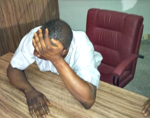 Akanni was pictured taking a nap at a desk at the conference room of the DSS. He could barely carry himself, and his eyes were red and shadowy.