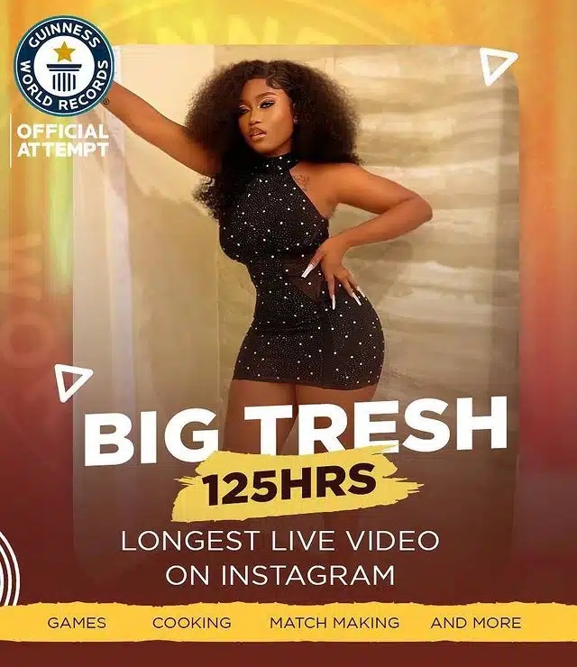 During the interactive session, Big Tresh answered curious fans who joined the live session. In one of her responses, she affirmed the record holder for the longest cooking time by one human, Hilda Baci was her inspiration for taking up the quest.