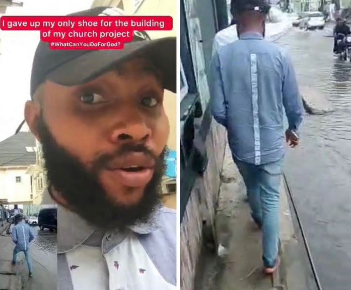 A Nigerian man has taken to social media to jubilate after donating his only shoes to his church for a project.