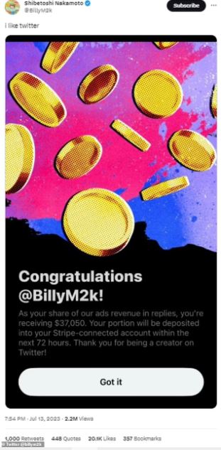 Elon Musk's Twitter has started paying verified Twitter users for their posts online.