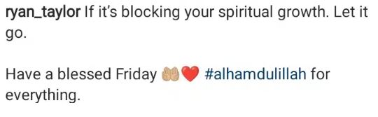 Ryan, however, didn’t return the gesture and dropped a quote some days ago about letting go of anything that impedes ones spiritual growth, which added fuel to the rumours.