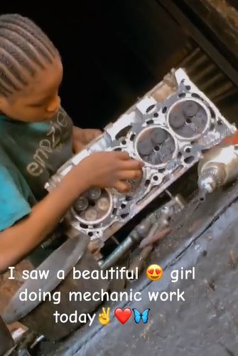 A video of a young Nigerian girl working at a mechanic workshop has gone viral.